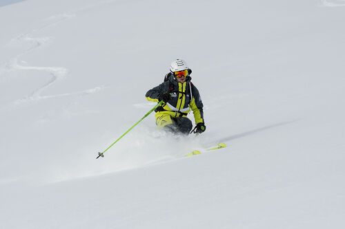 Vestito con il suo famoso giallo fluorescente in un unico pezzo, l'Orb Freebird è un riferimento nello scialpinismo.