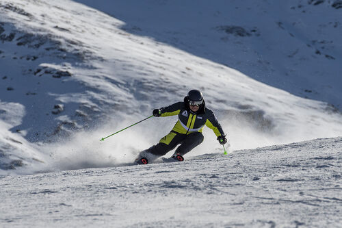 Lo sci ha una buona struttura, importante e solida, che assomiglia ad uno sci da gara nelle risposte.