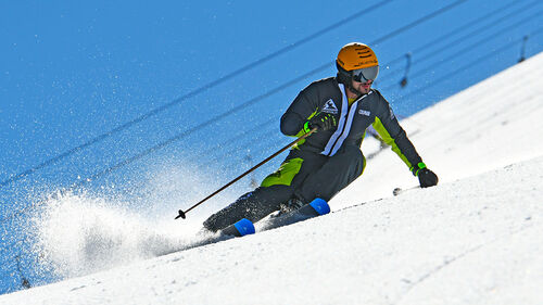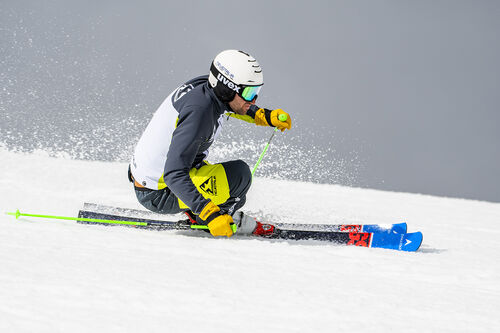 Il nuovo Speed Course Master GS è uno sci che richiede in ogni caso buona prestanza fisica per essere sfruttato al meglio, nonostante la piastra Konect faccia sentire meglio il terreno, rendendo la deformazione molto omogenea (Giordano Magri).