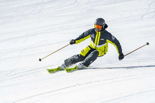 E’ un prodotto che si può apprezzare soprattutto nelle curve medie, situazione in cui si riesce a sciare in conduzione con curve agonistiche, in tutta tranquillità anche in una giornata affollata. Messo di taglio è aggressivo su pendii impegnativi e in quelli più semplici ben tollera qualche correzione del piede, in fase sia di indirizzamento sia di conduzione piena. In ogni situazione lo sci si adatta, dà il meglio di sè e ti fa sentire uno sciatore a cui viene tutto facile.