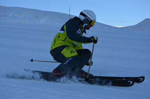 Fin dalle prime curve si sente la pasta con cui è fatto lo sci: grazie alla struttura derivata dai modelli più performanti della casa, la presa di spigolo è immediata. Durante la conduzione lo sci non cede in nessun punto della curva, si mantiene stabile e non si sposta di un millimetro.