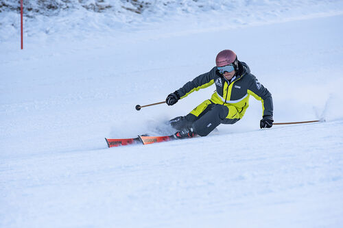 Al piede è sempre leggero, ha una struttura che non appesantisce la sciata, ma offre tanta tenuta in molti frangenti della curva, è facile da flettere nel range di utilizzo ottimale: le curve medie. “Come lo calzi noti subito la leggerezza, facile maneggevole e molto intuitivo” spiega l’istruttore nazionale Giordano Magri, non vi è rebound eccessivo ma le code tendono a non sostenere abbastanza (Davide Marinelli e Davide Mazzarrisi). L’impostazione è molto semplice, lo sci italiano ha un’ottima presa di spigolo che regala molta maneggevolezza, la struttura leggera ha però il difetto di rendere l’attrezzo “poco stabile quando il fondo diventa più duro” precisa Giordano Magri, quando si forza il ritmo la spatola risulta un po’ lenta da inserire in curva (Alex Favaro) e nelle curve ampie inizia a cedere (Federico Casnati).