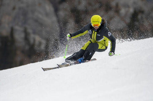 Non è uno sci da mettere alle strette, “su neve dura ad alta velocità vibra un po’” racconta Isabel Anghilante, sensazione confermata da Federico Casnati: aumentando la velocità la leggerezza della spatola influisce sulla tenuta, perdendo così in stabilità.