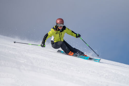 Lo sci rende al meglio nelle curve medie e ha ottima presa di spigolo, una lama tagliente che fende la neve e fa rimanere lo sciatore lungo i binari per tutta la conduzione. La stabilità della struttura è però condita da rigidità eccessiva per il segmento allround, “è difficile pensare di sciare tutto il giorno, la spatola è molto dura” spiega Valeria Poncet, seguita a ruota da Nicholas Pellegrini “pesante se portato nell’arco della giornata”.