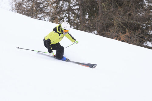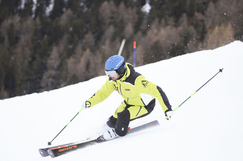 Quanto emerge in maniera importante dalle schede del nostro Test Team è la stabilità lungo l’intero arco di curva. La struttura multiraggio garantisce la possibilità di trovare un piacevole comfort in tutte le condizioni: lungo l’argo medio esprime la sua massima espressione, ad alte velocità con archi molto ampi resta stabile e preciso mentre (nella lunghezza testata di 175cm) risulta leggermente impegnativo negli archi di curva corti proprio in virtù della struttura molto importante che lo caratterizza. “Arriva lui, bello bello” esordisce Favaro, sottolineando come la struttura aiuti lo sciatore nella gestione dei tempi lungo l’intera azione di curva. Matteo Garino lo esalta come uno sci che “taglia bene in ingresso [..], e non scappa”, sottolineando ed evidenziando la sicurezza ed il comfort che si percepisce utilizzando lo strumento.