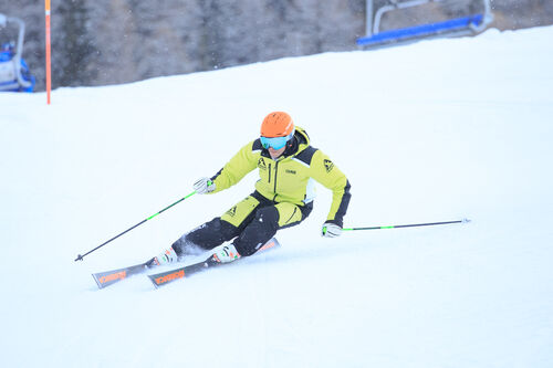 Lo sci è “polivalente, molto intuitivo: si riesce a cambiare curva con facilità e la tenuta è molto buona” racconta Laura Jardi al termine del test. La struttura riesce ad assorbire bene le vibrazioni del terreno, si fa condurre ma anche sciare con leggere rotazioni dei piedi, “è leggero ma tagliente, sempre presente sotto il piede e sempre piantato a terra” spiega Federico Mezzavilla.