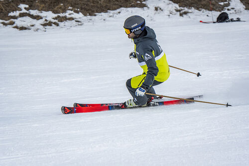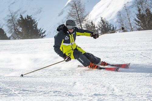 Il prodotto francese si trova a proprio agio negli archi medi, non ha cedimenti di stabilità e permette a uno sciatore di livello 6 e 7 di fare tutti gli archi senza portare al limite il fisico (Gianluca Branciaroli).