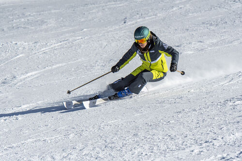 E’ un prodotto che si muove molto bene sia nelle curve medie che in quelle ampie, nelle quali mostra sempre stabilità, conduzione e un’eccellente presa di spigolo. “E’ uno sci veramente stabile e aderente al terreno su archi medi ed ampi” spiega Michela Speranzoni “con una buona prestazione in conduzione anche alle alte velocità”.