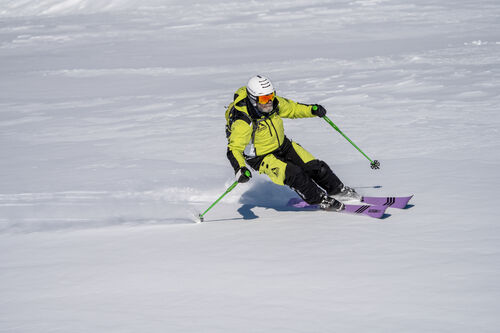 Il modello testato nella misura 174 ha una larghezza sotto il piede di 94mm., un raggio di curva di 17m ed un peso di 1600gr. caratteristiche che rendono lo sci buono a livello di gallegiabilità in neve fresca polverosa, agile e scattante in discesa e piacevole durante le risalite con le pelli.