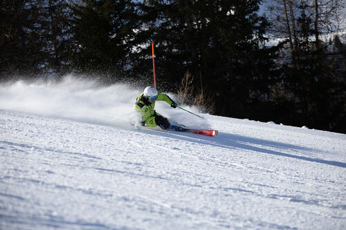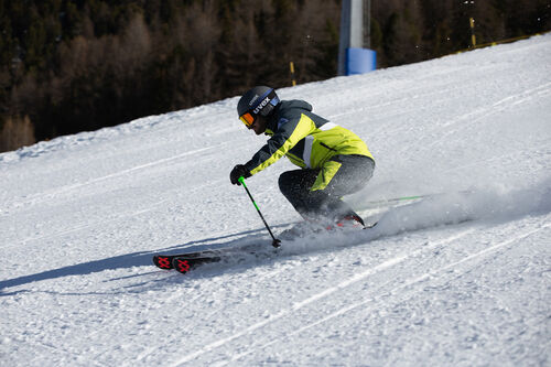 Lo sci, seppur strutturato, appare leggero nell’impostazione (Matteo Garino) ed è veramente semplice la fase di inversione, si mette di taglio in un lampo, assecondando e aiutando lo sciatore che deve perfezionare alcuni dettagli della sciata, ma pur sempre di livello tecnico elevato. La coda è parsa fin troppo responsiva per uno sci GS oriented (Alberto Magri), condizionato forse anche dalla lunghezza e raggio ridotto del modello in prova.