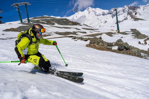 Dynastar M-Tour 90 testato nella misura 177 con una larghezza sotto il piede di 90mm. e un raggio di curva di 18m. è risultato essere uno sci da ski-touring leggero in salita e comfortevole in discesa, un tuttofare che se la cava bene in ogni situazione e condizione della neve.