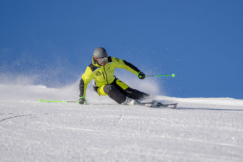 L'e-Race è progettato per curve a medio raggio. Stabile e reattivo, l'e-Race ha caratteristiche di sci da gara complete, tuttavia è più facile da girare e meno impegnativo rispetto agli sci di livello FIS. La costruzione include un'anima in legno e Titanal, completata da robusti fianchi in ABS e una piastra da gara. La tecnologia EMC riduce le vibrazioni indesiderate per una sciata fluida.