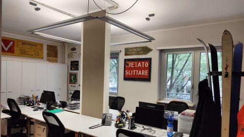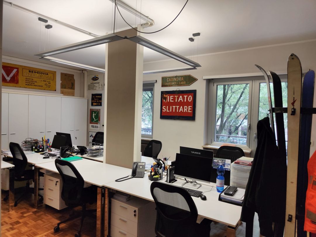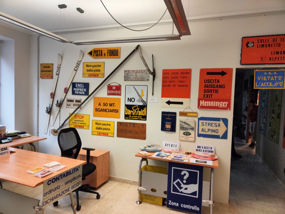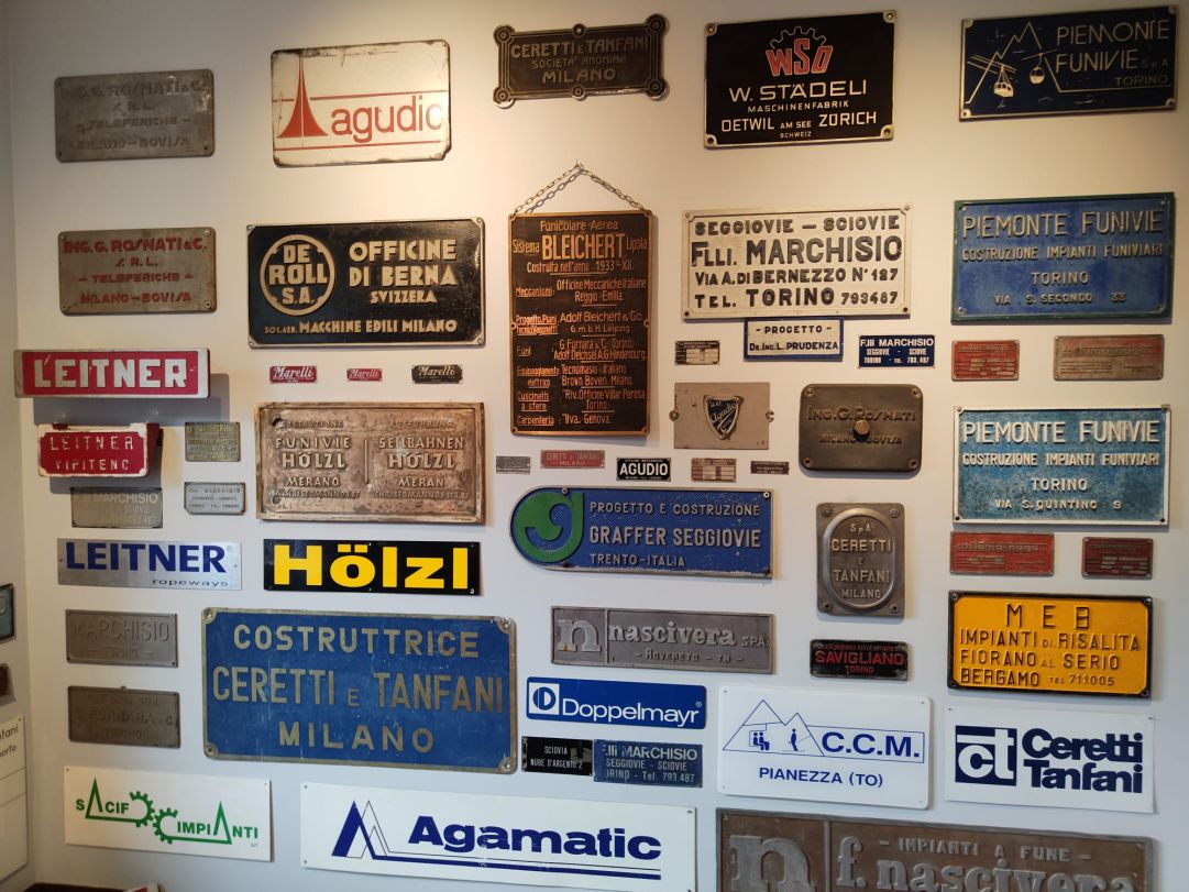 Sembra di essere in un piccolo museo, ma la peculiarità degli spazi è che si tratta di uffici che vivono quotidianamente come qualsiasi luogo di lavoro tra funzionali scrivanie e moderni computer necessari allo svolgimento dell’attività aziendale. Sateco è un’impresa specializzata in controlli non distruttivi e magneto induttivi su ogni tipo di impianto a fune, con una clientela radicata tra Piemonte e Valle d’Aosta (da cui provengono gran parte degli oggetti esposti), anche se non mancano occasioni di lavoro in altre regioni italiane e all’estero, con attività svolte in 11 paesi e 4 continenti, come sottolineato dal sito internet aziendale. Lunghe trasferte presso gli impianti di risalita delle aziende committenti si accompagnano al lavoro svolto negli uffici relativo al controllo dei dati raccolti e al rilascio delle certificazioni. Un’attività sviluppata e cresciuta in quarant’anni di presenza sul mercato, svolta in un’ambiente in sintonia con il passato, ma proiettato verso il futuro.
