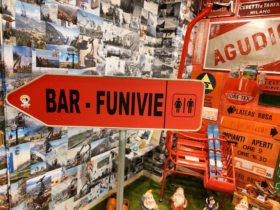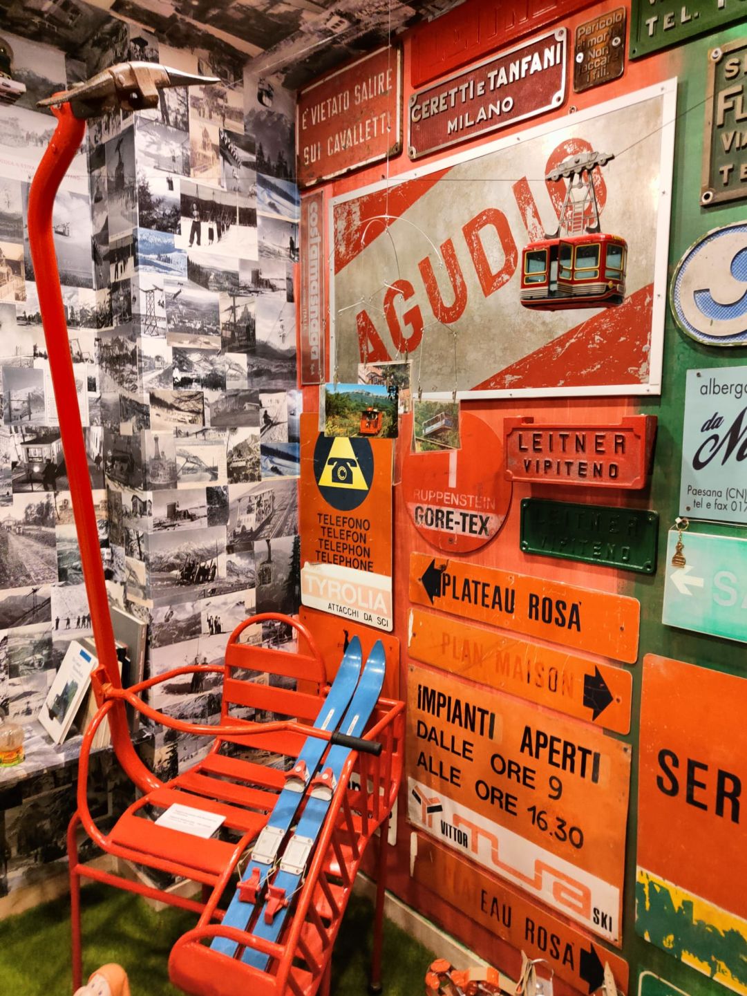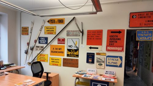I visitatori sono accolti dal titolare, Alessandro Rossi, che mostra compiaciuto i cimeli raccolti in tanti anni di lavoro, mettendoli in salvo da degrado e abbandono. Numerosi i componenti di impianti di risalita: veicoli, morse, funi e poi cartoline d’epoca, tantissimi variopinti cartelli dal sapore vintage, modellini di funivie, vecchie paia di sci, bozze di progetti. Non manca davvero nulla per consentire ai visitatori un autentico viaggio nel tempo dall’inizio del Novecento ai giorni nostri. Presenti anche alcuni interessanti cartelloni sulla storia degli impianti a fune in Italia e nel mondo realizzati da Sateco in occasione della mostra “Storie di funi e impianti” allestita lo scorso anno a Macugnaga nella stazione intermedia (Alpe Bill) della funivia che conduce al Passo di Monte Moro.