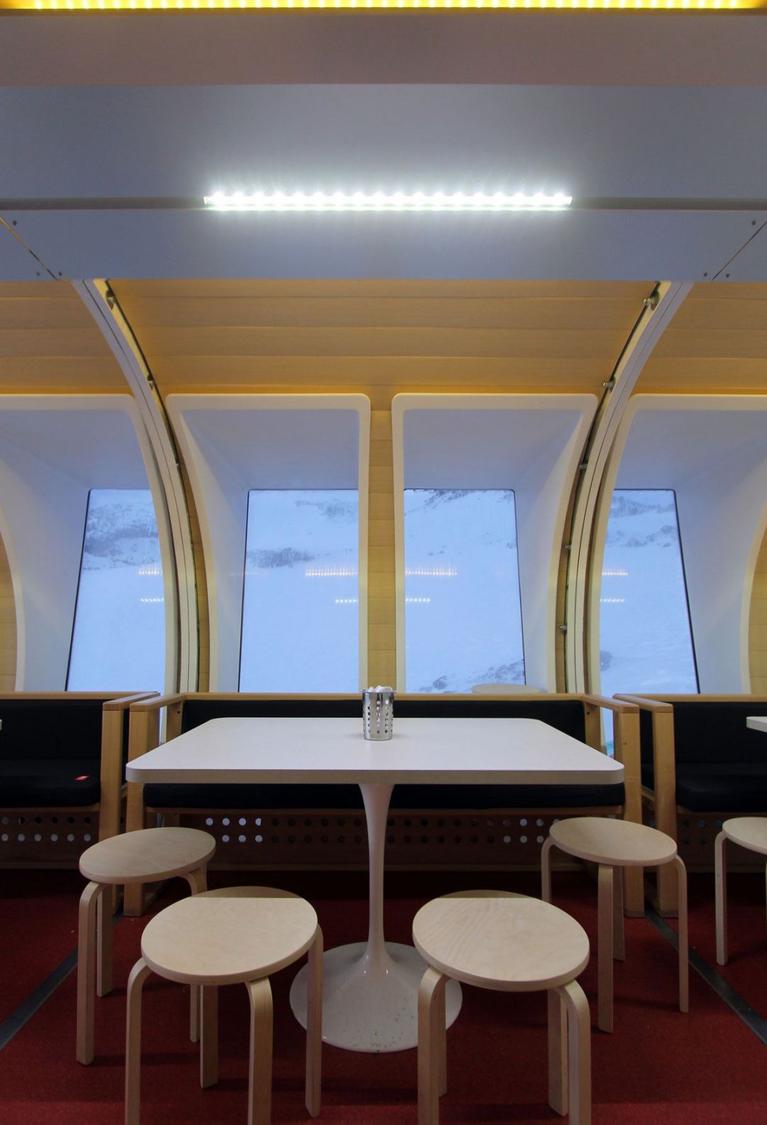 Il quadro si completa con uno specifico sistema di ricircolo dell’aria interna con recupero termico, l’illuminazione a led particolarmente vantaggiosa e a basso consumo, il riscaldamento a pavimento e un sistema di fusione della neve per la fornitura di acqua per l’impianto idrico-sanitario con un depuratore delle acque reflue, specifico per l’alta quota, che consente di abbattere quasi totalmente la dispersione di inquinanti organici nell’ambiente.