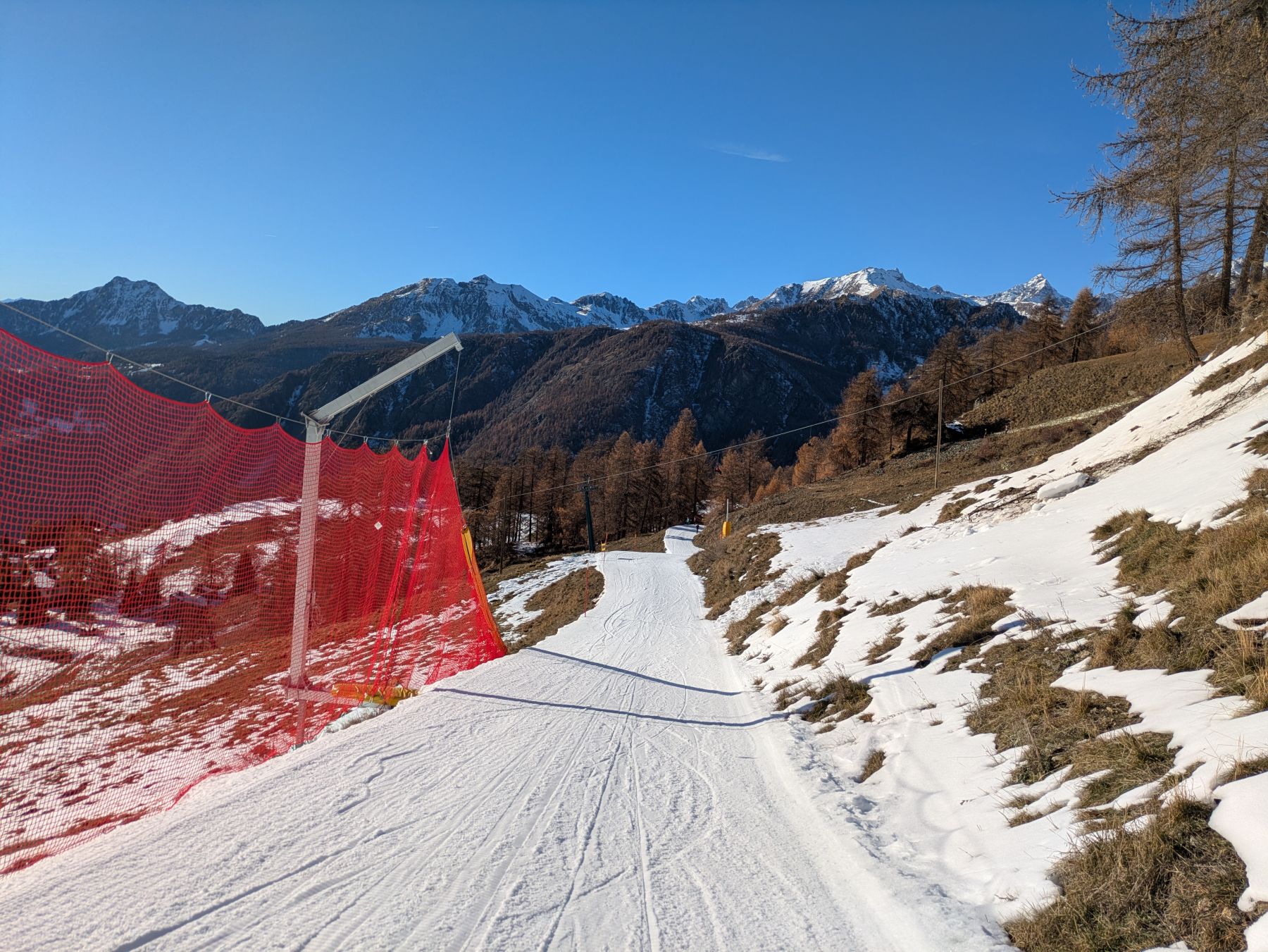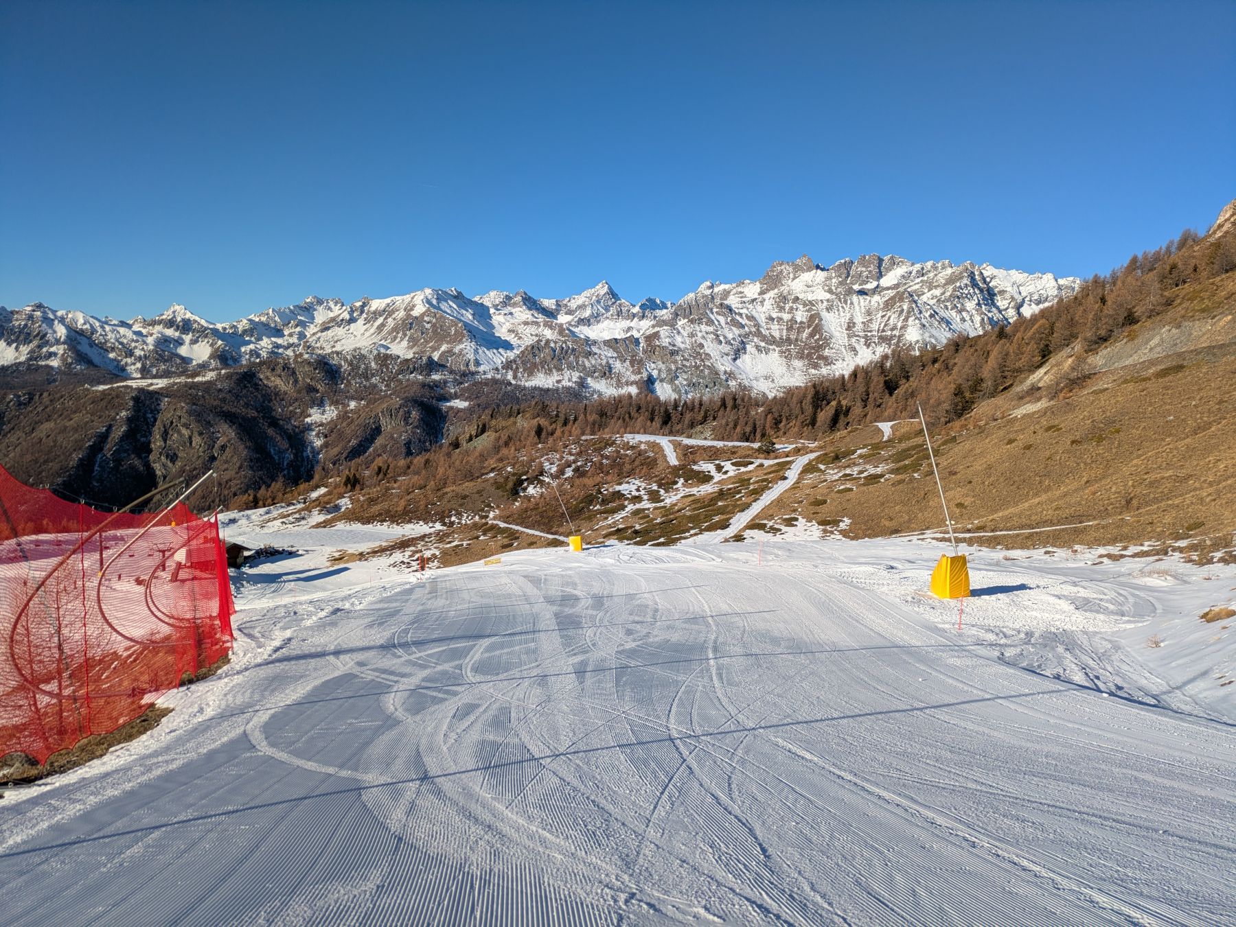Il tratto iniziale della pista offre una veduta verso Chamois.