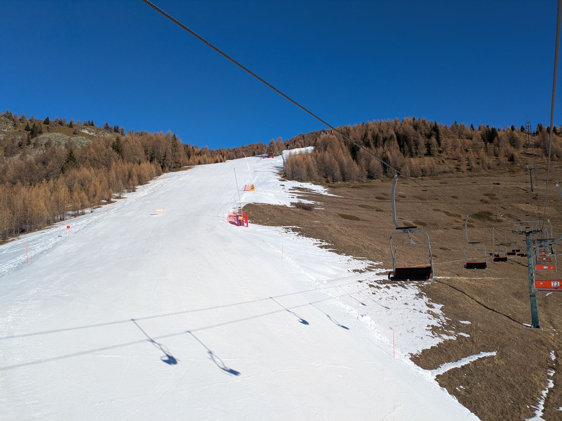 Dalla risalita in seggiovia è evidente l'ampio tracciato della pista Fontanafredda.